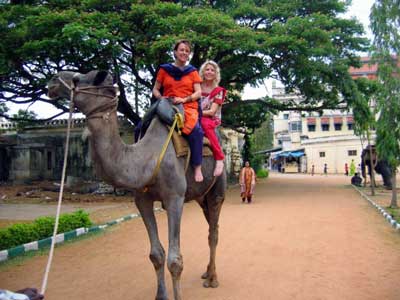 Another surprise was that Deepa took us on an overnight train ride to southwest India to experience a safari in the National Forest. I was thrilled to see wild elephants, monkeys, birds and many other animals but alas, I didn't get to see a tiger, only the tiger’s print in the mud. The jeep before us did get to see the tiger, oh well. I got to ride on an elephant and a camel. The camel was surprisingly comfortable to ride on.