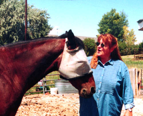 She could also be seen every other Sunday on the local ABC affiliate, KMGH-TV in Denver. "I do an herb spot," Christine explained." She included flower essences in her presentations. Christina made flower essence formulations for local animal communicators and countless animal caretakers in her community. Her favorite book is The Encyclopedia of Natural Pet Care by CJ Puotinen (McGraw Hill, New York, 2000). She highly recommends this book to anyone who loves animals. The following are case stories and practical tips from Christina's therapeutic work with animals. The Primacy of Five Flower Formula Five-Flower Formula is the flower essence that I recommend everyone should have on hand. I have bottles of Five-Flower Formula in the house, barn and car. Five-Flower is for any kind of emergency, trauma, accident, or stressor, large or small. I recommend it when you don't have "specific" essences on hand. Five-Flower Formula is immediately calming to any animal or person. I think the key is remembering that you have the flower essence and remembering to use it. Several years ago, I looked out the door and saw a young Percheron horse belonging to my neighbor, running wildly in our corral. His caretakers were teaching him to pull carriages. He was dressed in the full pulling regalia with a yoke and chains, and tires attached at ground level for weight. Something spooked him, and he was running around the corral, frothing. My daughter ran for a can of grain and I squirted it with Five-Flower Formula . As we offered the grain, his ears perked up and he came to a screeching halt in front of us. In seconds you could actually see a calm from the essence wash over him. His caretakers arrived, wild eyed and stunned that anything could have settled him so quickly. A Blend of Aspen and Mimulus for Fear I use Aspen and Mimulus in a blend I have named "Fear." It is remarkable to witness the effectiveness of these two flowers. Animals and people who react strongly to thunderstorms and firecrackers are helped dramatically. I have gotten the most heartwarming letters and e-mails from people who tell me they "have a new animal". A friend's mare was about to foal and Independence Day was approaching. This mare had a history of great agitation when exposed to thunder or firecrackers. Donna gave her horse 3 doses of Aspen and Mimulus essence during the day. The horse was not oblivious to the fireworks, but she remained calm amidst the noise and smell of sulfur in the air. Groomers informed me that they used the fear essence for many of the dogs they worked with who were labeled as "aggressive" either by other groomers or their people. Many times the dogs are not aggressive at all, but are reacting in an aggressive manner out of fear.