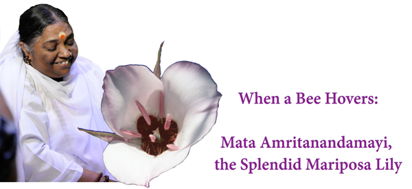 Mata Amritanandamayi (Mother of Immortal Bliss), or Ammachi (Dear Mother) as she is familiarly called, embodies the essence of both the Splendid Mariposa Lily , and, to many who follow her, the healing love of the Mariposa Lily . The Mariposa Lily, a flower in the Flower Essence Society repertory, assists souls who have, in some way, been injured or neglected by their earthly mothers. This essence helps such souls receive what they may have missed during their upbringing through their earthy mother-child relationship. 1 Splendid Mariposa Lily, a member of the Flower Essence Society’s Range of Light collection, raises the properties of the mother archetype to a higher level. 2 Splendid Mariposa Lily encapsulates the Universal Mother’s indefatigable traits of boundless love, joyful care, unfailing support, sweet compassion and tender mercy (to name but a few). A devoted mother will lovingly attend to every single need and sorrow of each of her children, shepherding them through the tribulations of life; this devotion may require great sacrifice, and may be on call even during times of great duress. Splendid Mariposa Lily assists souls who are willing to lovingly embrace the world by becoming a vessel for the holy work of attentively caring for the needs and spiritual development of all sentient beings. This flower essence supports an individual soul’s ability to sustain connection with the Divine Mother, the Source of sustenance, in order to embody—feel and demonstrate—unflinching care for others, even under harsh conditions. The cup-like shape of the Splendid Mariposa Lily flower forms a container, which is perhaps the most recognized primal image of the universal feminine principle. The cup, container, yoni, chalice, or grail, is the sub specie aeternitatis symbol of that which receives, contains, and supports, as it is the wondrous mother vessel. As such, the vessel becomes the incubator, the receiver, the crucible or cooking pot of transformation, the funerary vessel, the renewing infinite fountain, ever-abundant horn of plenty, or any of the other functions of this archetypal numinous pattern. 3