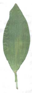 The leaves on the bottom of the plant are big (18 x 6 inches) and ovate, reminding us of corn leaves because they are parallel ribbed. The upper leaves, which are younger and smaller, are also less rounded and ovate.
