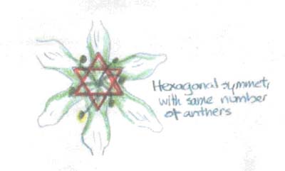 veins, and the alternating pattern of the leaves, stem, and flowers.