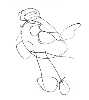 July 13: Note abstract nature of his drawings; he does not draw specific objects from his environment