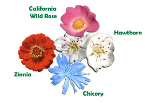 (LVJY) includes Aloe Vera , Aspen , Hawthorn , Bleeding Heart , Borage , Holly , Yerba Santa , Mariposa Lily , Quince , California Wild Rose , Chicory , Zinnia , Mimulus , Mustard , Larkspur , Star Thistle , Sticky Monkeyflower , Sagebrush , and Nasturtium