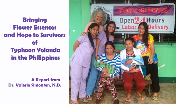 Editor’s note: FES donated flower essences for the volunteer work done by Dr. Valerie Simonsen. She traveled to the Bumi Wadah Childbirth Manager & Medical Relief Clinic in the heart of the Typhoon Haiyan/Yolanda disaster zone, Dulag, Philippines. Typhoon Yolanda occurred in November of 2013 and reportedly was one of the strongest and deadliest typhoons ever recorded. Following is Dr. Val’s report on her work (it has been slightly edited for presentation). Read the USAID Fact Sheet on Typhoon Haiyan/Yolanda, and rough statistics for 4 months of services provided at the Bumi Wadah clinic here .