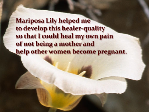 Making the flower essences of Mariposa Lily was one of the most profound moments of my life. I had assumed that this flower was speaking to the other students of the class who had children in their lives, and I knew I would never have children.