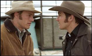 Ennis the character: From the first sight of Ennis in the movie, he appears as a withdrawn, uncommunicative and deeply melancholic personality. His whole gesture speaks of “interiority”. His speech is not just the laconic drawl of the cowboy who passes long periods in silence and isolation; it is profoundly taciturn, halting and restricted. Through tight lips Ennis mumbles and virtually swallows his words, often sounding as though he has a stone in his mouth. His mouth is normally taught, pursed and he rarely smiles throughout the entire film. When he tries to express deeply felt emotions he gives the appearance of choking on the effort to get them out, as though their mere expression is overwhelmingly painful to him. Ennis’ body language is inhibited and self-conscious. He is often leaning on things in a reticent posture, looking down unable to make eye contact, hat covering his face, his chest protected. In the later part of the film as he grows more withdrawn, he is increasingly portrayed as hiding under his hat, head down, withdrawn and unavailable. His facial expression is held in, undemonstrative except in rare moments of great beauty when he smiles, jokes or softens his gaze. Ennis is strongly addicted to tobacco and smokes in much of the film. Even Ennis’s name is evocative of the profound inwardness of the person as it is pronounced in the back of the throat and one scarcely opens one’s mouth when pronouncing it (indeed many of Annie Proulx’s characters have names whose sound reflects the gesture of the person).