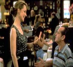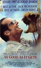 In ever-hectic New York City, Melvin spends a great part of his day at home writing and living in a world the size of his bedroom. He only goes out to have lunch at the same restaurant, where he takes his own sterilized silverware and where he demands to be served by the same waitress, Carol Connelly (Helen Hunt), whose 9-year-old son has chronic asthma. In addition, he interacts with his neighbor, Simon Bishop (Kinnear), a gay painter who has a little dog (Verdell, great acting).