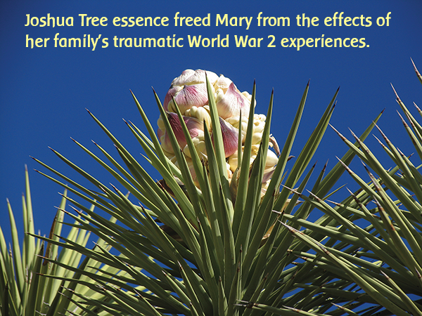 Joshua Tree flower essence has been particularly helpful for Mary Davis, a credentialed life coach in Tucson, Arizona, who uses flower essences in her wellness consultation practice. She described how Joshua Tree essence freed her from the effects of her family’s traumatic World War 2 experiences, and gave her the inner strength to overcome a debilitating physical disease and forge her own path in life. A Legacy of Generational Trauma All of Mary’s family—her parents, grandparents, aunts and uncles—were World War 2 refugees during the Holocaust. Mary belongs to the first generation born in the USA. Her mother’s family spent six years in a refugee resettlement camp in Germany, which had been a concentration camp during the war. Mary’s father, a teenager at the time, and his family lived in Colombia while his family waited for admittance to the US. At one point his situation became intolerable and he ran away for two weeks, living alone in the jungle. Mary’s parents did not talk much about their refugee experiences. In a recent talk with her mother it became clear that discussions about the past were not conducive to her mother’s wellbeing because they brought up painful memories of trauma. Due to the spiritual and energetic nature of such extraordinary generational trauma, Mary still deeply feels its impact. She said, “I felt that there was a family curse, and it was this darkness that just permeated my mind and heart.” When she discovered Joshua Tree flower essence, she felt that it dispelled this darkness. “If I don’t take it,” she said, “ I can feel the darkness creeping back in again ." Mary described the effect of Joshua Tree as giving her the freedom to live her own life, not to be invisibly bound by her family’s past. She also said that the essence helped her with acceptance. Her mother and her daughter have different attitudes and values, but she feels at liberty to live her own life and accept that they have theirs. Mary concluded, “I've got my own life. I've got my own hopes and dreams, and gifts to share. I want to, I'm going to, and now doors are opening for me.” Joshua Tree and Grief Relief for Layered Trauma