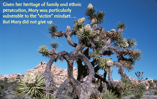 When she began to believe, “I can’t.”, Mary felt herself to be a powerless victim of life. Given her heritage of family and ethnic persecution, Mary was particularly vulnerable to the “victim” mindset. Initially her diagnosis triggered a sense of dark hopelessness, even suicidal thoughts, exacerbated by her experiences in the social services system.