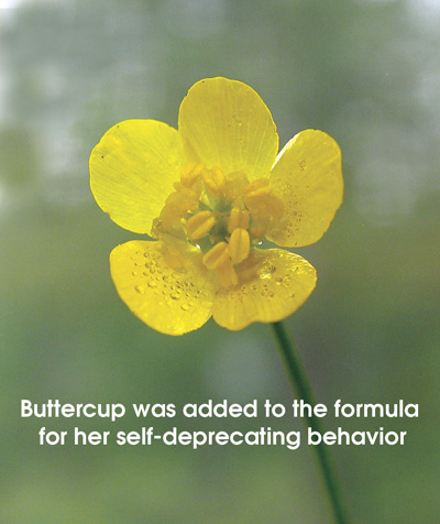 Next, I added Buttercup to the formula for her self-deprecating behavior.