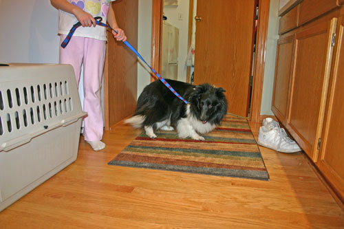 Maize is a 2 ½ year old bi-black Shetland Sheepdog. Her father is a top show dog and her mother was also a show dog. She is owned by her breeder, and has lived in a kennel for much of her life. She received human contact and attention daily from the breeder and her family members while living in the kennel. Maize was on a relatively decent quality dry dog food while living with the breeder. After she was with us for a couple of months, I switched her diet over to a balanced home made raw diet. As the breeder does not believe in over-vaccinating her dogs, Maize received the required rabies vaccine and the minimum number of other necessary vaccines. She was also on a year-round heartworm prevention. Aside from needing a bath, she was in good condition and has a nice healthy coat, good skin, and has no known health problems.