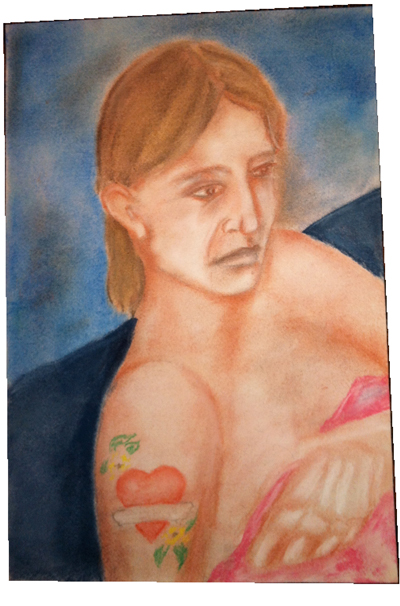 In this session you shared that you recently expressed deep heart-centered sorrow to your husband about your father’s heart condition. While you felt vulnerable saying, “I am hurting,” you did not shut down, but instead shared authentically and was heartened when your husband expressed his love and support for you, as well as his gratitude for sharing. S wrote captions to accompany the paintings completed for the assignment described above (the order of these descriptions reflects the “timeline” aspect of the assignment): "Self Portrait with Heart Tattoo”
