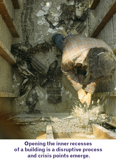 I have learned over the years that tearing apart a home often evokes deeply held psychological, spiritual and emotional issues for the client. Opening the inner recesses of a building is a disruptive process and crisis points emerge.