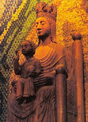 The majority of Black Madonna statues were created in the Middle Ages. They fall into three major types. iii The first is the Byzantine icon style, produced in Italy in the thirteenth and fourteenth centuries. The second and third types are wooden statues typically around thirty inches tall. The oldest are the enthroned or “seat of wisdom” madonnas of the eleventh and twelfth centuries, found primarily in south-central France and known as Vierges Noires. Their facial expression is one of power, majesty and deep interiority.