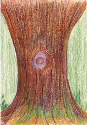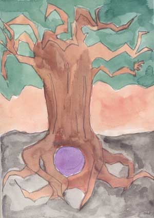 Session 2 She seemed to enjoy seeing me again after a month. She said she had never taken the same essence combination for an entire month before. However, Keiko felt very irritated and anxious during the month. She described it as her negative parts just breaking to the surface ( Agrimony and Cayenne ). What most impressed her was that she realized how tired she was. She had been sick with throat pain and was not in good condition. She had two interesting dreams in the first part of this month. One is the dream she had on the night she started taking flower essence. In the dream, she was in underground shopping center. There she had a feeling that a big earthquake would happen. Then she ran away with terror. The second dream was of finding a badly wounded cat in the space under her house porch. The cat seemed to be dying and she knew it. She wanted her to die in a comfortable space but the cat did not react to her calling. I think these dreams represent her anxiety to look into her inner self. She had been hiding her own true feelings, as though badly wounded like the cat under the porch. Going underground is also a symbol to go into unconsciousness. In a real life, she had been working with two persons with severe physical disabilities. Sometimes they were very selfish. (They also appeared in her dreams) Keiko had never complained about it. But this month, she expressed her anger to her co-worker. She did not like her co-worker’s response and became angry. Surprising to her, her co-worker did not seem to be annoyed, but rather showed sympathy to Keiko. From this exchange, she realized it's she herself who prohibits anger, because she is afraid. Keiko said "I had been affected even by my own thoughts." ( Centaury ) She said she used more time to paint or weave. She described this "it's like playing with colors. Kid's play."( Indian Paintbrush ) After realizing how easily she was affected by others, she said “I want to confront my own feelings. I do not want to run from them any more. For a long time, I had been deceiving my feelings. What I had been trying was to act natural, but now I know it's all fake…” And we discussed and agreed that she needs to be more grounded. Her drawing of a tree without roots (below) seems to be speaking its need. Keiko's dream had a lot of symbolic images and it helped me to choose the next flower essence formula— Agrimony , Centaury and Indian Paintbrush – for the same reasons as the prior session Buttercup – to find her own light; she seems to have lost confidence Corn – for grounding, to help her stand on her own two feet Angelica – for her anxiety. She seems to need angelic help in her initial process of transformation. She told me that Angelica is one of her favorite essences.