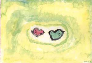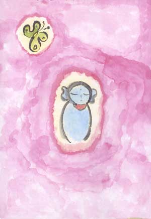 Comments on the case by Patricia Kaminski: I was impressed to see how the artwork presages the event of her becoming pregnant...a number of pieces show various aspects of “womb enclosure” or “spirit making contact” – these were drawn before Keiko got pregnant but when she was taking flower essences to work with the various soul issues. I think Angelica and Indian Paintbrush [were] very pivotal in her case – helping her to align creative forces – which for her particular creative destiny brought her to bringing a child into the world.