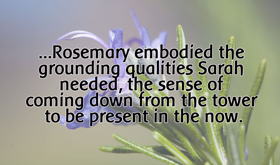 Rosemary: Being Present in the Now Together Jaime and Dr. Ballentine , both of whom had significant experience with flower essences, formulated a treatment plan for Sarah. They began by discussing in detail the mother/daughter relationship, exploring soul issues, and pouring over the Flower Essence Repertory to find just the right essences for Sarah’s treatment. Dr. Ballentine noted that both Sarah and Jaime seemed to have difficulty incarnating into the physical world. At one point in their work together, Jaime told him, “I feel it took me 50 years to get here.” Sarah also struggled with feeling comfortable in her skin. She was born two months premature and spent 6 weeks in a neonatal intensive care unit where her family was unable to hold her. Jaime recalls that during this time Sarah seemed “very far away.” Even while in junior high school, Sarah had retained many of these ‘absent’ qualities, so the treatment objective was initially to bring her back to “here.” It was a logical choice, then, to begin Sarah’s flower essence therapy with Rosemary. Jaime felt that Rosemary embodied the grounding qualities Sarah needed, the sense of coming down from the tower to be present in the now: whether in the kitchen chopping vegetables or getting her hands in the soil; Sarah needed to find her center in the day-to-day experience. After four months of working with Rosemary, Jaime noticed that Sarah was much more open, engaged socially, and connected.