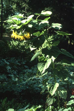 Questo capo fiorito di girasole si regge sopra ad un robusto stelo fibroso, in modo eretto ed imponente; le piante nel nostro giardino crescono fino a 12 pedi di altezza.